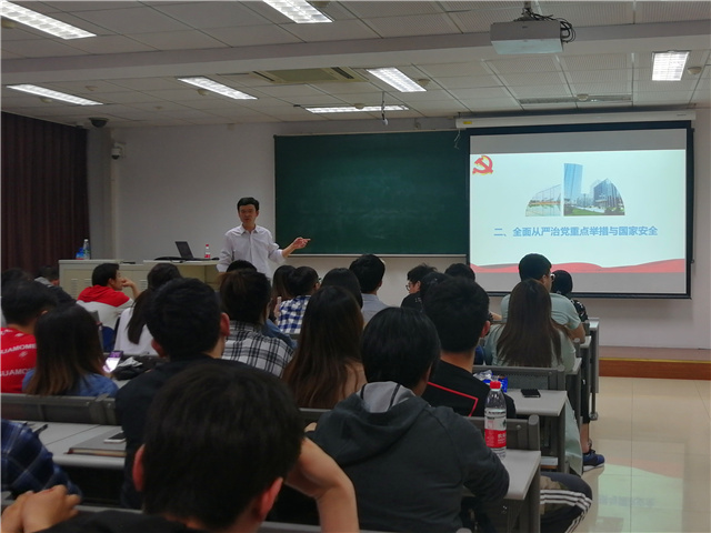 周连景重点从国家安全的角度出发,谈到了中国共产党面临的四大考验和四大挑战,指出加强党的政治建设,全面从严治党对于维护国家安全的重要意义,重点讲解了十八大以来从严治党的重要举措和成果,引导学生党员和入党积极分子坚定理想信念,矢志奋斗,担当起民族复兴大任,时刻谨记维护国家安全,为实现国家的长治久安做出自己的贡献。