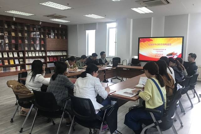 参加学习的部分支部书记和2017级硕士第二支部党员,围绕习近平总书记以身许国的志向、深入调研的工作方法、高尚的个人修养三个主题,交流了阅读的心得体会。支部党员秦娜谈到“习近平总书记在三十多年前任县委书记的时候,就对自己有严格的要求,在生活中的点点滴滴都是可以作为榜样示范的。主动深入群众、勤俭廉政、勤奋博学、有责任有担当,习近平总书记今天带领中国人民取得的巨大成就绝非偶然,在很早以前就已经有了把自己的一生奉献给国家和人民、以身许国的远大志向了”。学生党支部书记们也都表示作为当代青年,要不忘求学初心,练就过硬本领,提高个人修养,成长成为堪当民族复兴大任的时代新人,更好地投身于社会主义建设中,为人民服务,为建设社会主义现代化强国添砖加瓦。