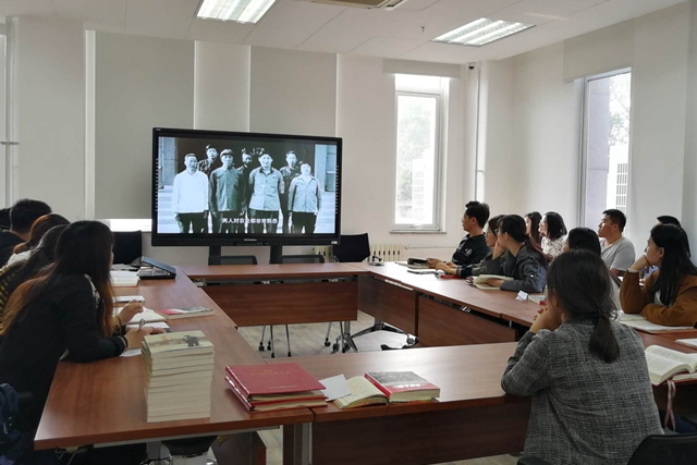 2017级硕士党支部书记张荣楷首先介绍了《习近平在正定》的出版背景和习近平总书记的从政之路,如习近平总书记所说“正定是其从政起步的地方”,习近平总书记治国理政的思想理论都可以从正定执政期间寻到根源,阅读这本书也有助于学生党员更好的理解习近平新时代中国特色社会主义思想的源头。随后与会党员共同观看了视频《初心·正定篇》,通过视频导读带领同志们体验书中所讲述的习近平总书记从政起步的奋斗轨迹、为民情怀以及正定的风貌和巨大的发展变化,正是在习近平总书记的带领下,正定一步一个脚印的向前发展。