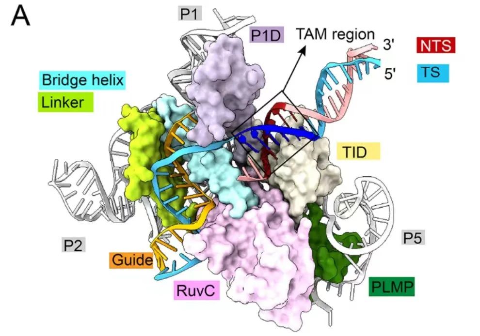 IS200/IS605转座子家族广泛存在,它可以编码多种RNA介导的核酸内切酶,IscB和TnpB被认为分别是Cas9和Cas12的祖先。IscB的大小约为Cas9的2/5,但结构域相似,且相关的ωRNA发挥crRNA和tracrRNA在指导双链DNA切割中的联合作用。科学家们揭示了IscB和Cas9在结构和机制上的相似性:⑴ωRNA与Cas9中的REC结构域等效;⑵IscB特异性PLMP结构域对于RNA引导的DNA切割是必不可少的;⑶从IscB到Cas9的转变涉及到ωRNA的弱化和蛋白质结构域的引入替换。