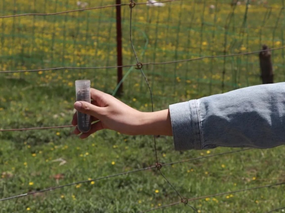 交流结束后,科考队员对当地土壤进行检测。