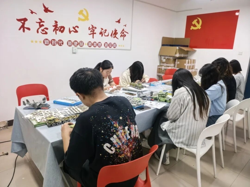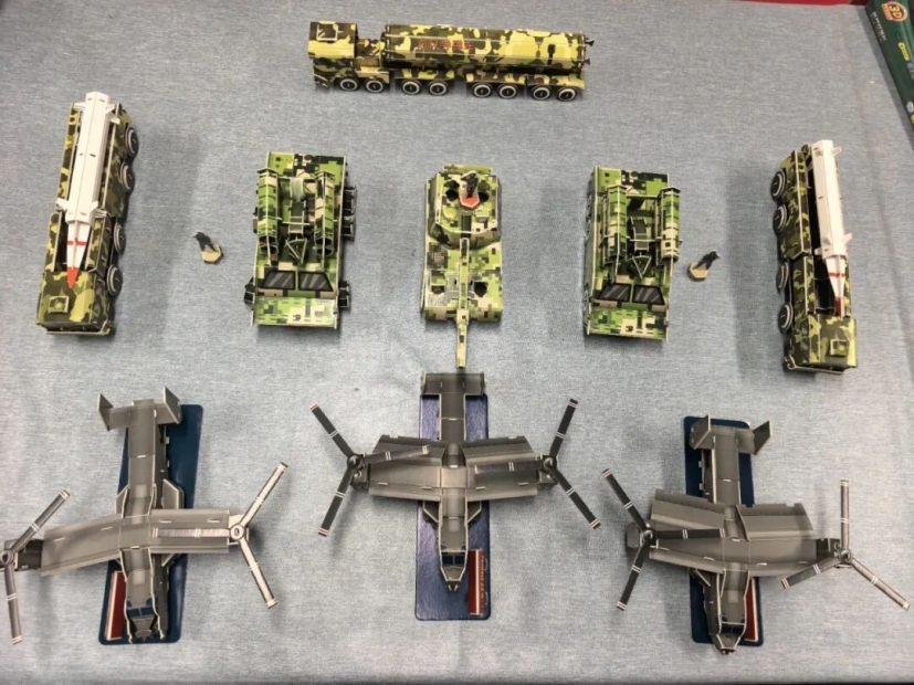 在这个过程中,同学们尽情享受拼装的乐趣,在图纸的指引下,在拼图的扣合间,大家好像感受到了武器装备之精密和艰深。当拼装好的坦克、飞机、导弹车排列成分列式,脑海中再次浮现出了“九三阅兵”中的盛大军势,每个人再次点燃了心中的爱国之火。