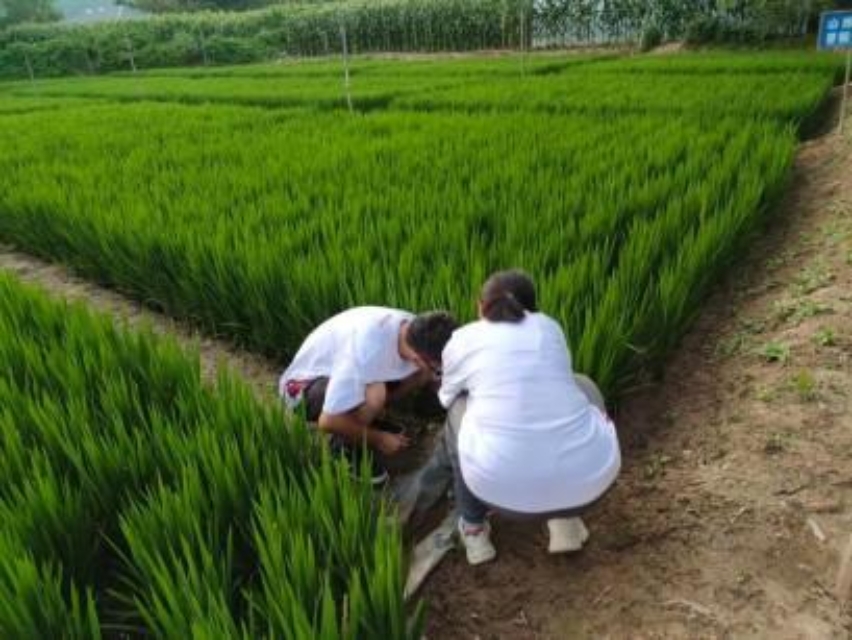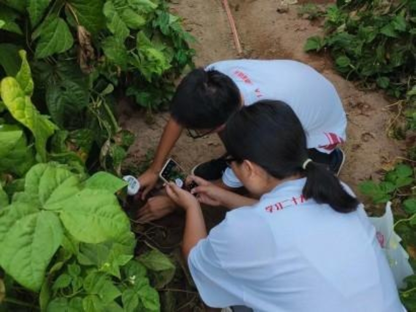生态园土壤采样:在峪口镇生态园,队员们对豆角种植大棚进行了土壤样本采集,关注设施农业的土壤特性。同时,对水稻田的水土环境进行了综合采样(水样+土样),探究当地湿地生态农业模式。