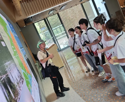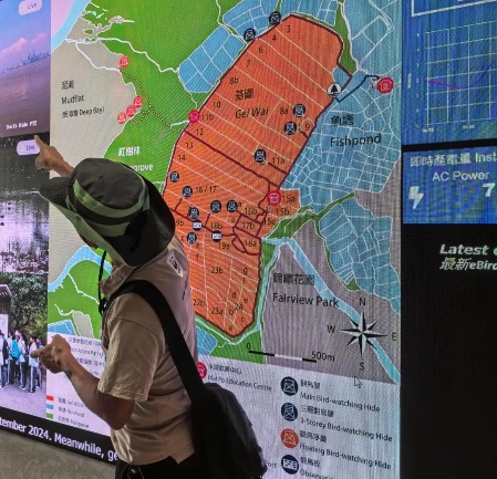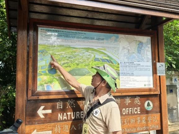 在进入米埔自然保护区之前,在米埔保护区的接待大厅,我们的导游结合地图对米埔自然保护区进行了详细讲解,团员们认真聆听学习。
