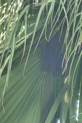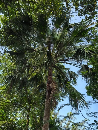 在我们观察蒲葵树时发现了一窝藏于叶下的短吻果蝠,导游为我们具体介绍了这种存在于热带亚热带的短吻果蝠的生活习性。不同于我们对蝙蝠吸血的刻板印象,短吻果蝠食物来源于水果,其他很多蝙蝠食物来源于蚊虫。只有少数蝙蝠吸血,而血液也往往来源于家畜。这些聚集成群的短吻果蝠是用蒲葵树的叶子,蒲葵叶作为居所,将块叶整到成个帐篷的样子,叶面向下堕。其独特的身世背景和生活习性让我们感到十分惊喜。