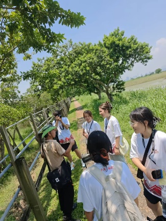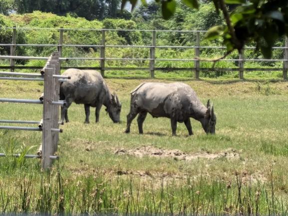休整完毕,继续考察,我们来到一处旧农场。这里除了废弃的农场建筑,还生活着两只大水牛。我们观察了这两只水牛,并在导员的讲解下深深地了解了水牛对于湿地的重要性。
