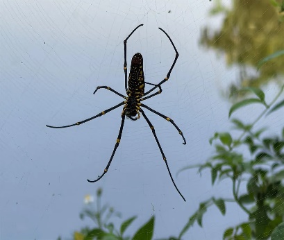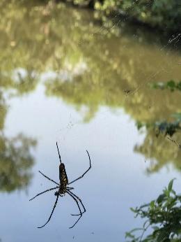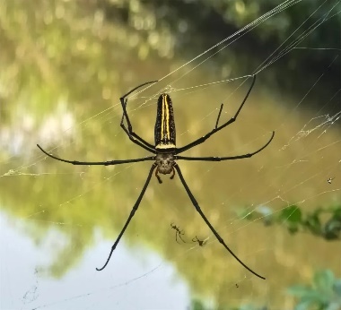 考察过程中,我们途经一处临池树丛,在那里张着一张巨大且近乎无形的蛛网,我们就在这里发现了一只人面蛛!这里有一只巨大的雌蛛和一只体型渺小的雄蛛,此外还有一群非常非常小的幼蛛。