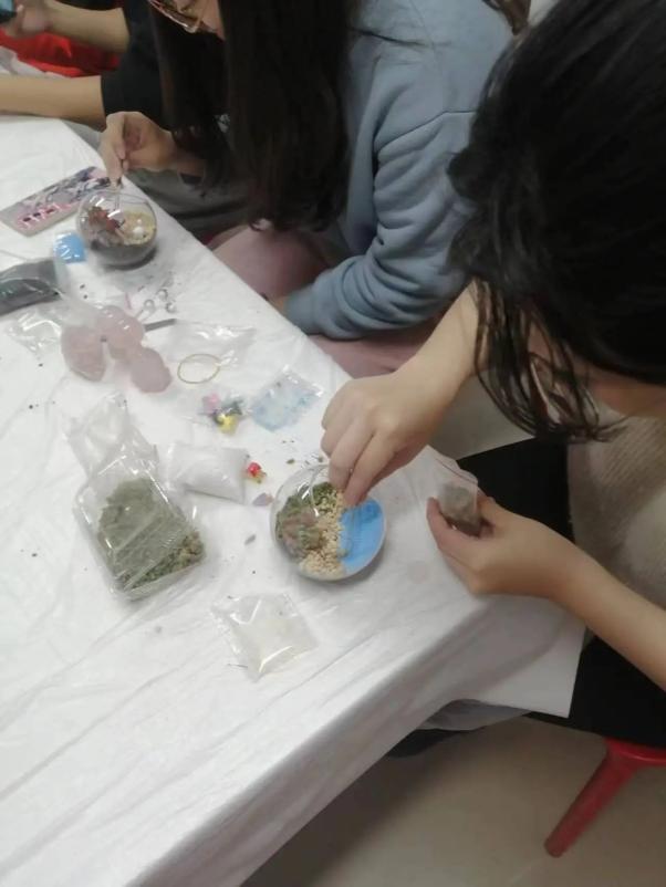 同学们在制作微景观的过程中不仅展现了个人的创造力,更培养了团队合作的精神。大家相互帮助、相互学习,共同解决问题,让整个活动充满了欢声笑语与合作共赢的氛围。