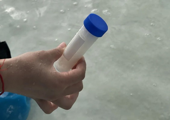 生态科考队员对湖底盐层进行取样,对高盐环境进行调研,期望能回到实验室中分离出噬盐菌。这些噬盐菌是茶卡盐湖独特的生物资源,在盐湖的生态系统中扮演着重要的角色。它们的研究不仅有助于我们对盐湖生态系统的理解,还有潜在的应用价值,如盐湖生物技术等领域。