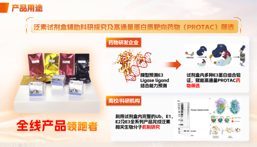 项目使用多种创新手段优化UPS蛋白,赋能UPS全流程生产利用。团队完成了UPS全系蛋白的单件生产并整合体外泛素化检测试剂盒,用于高通量底物蛋白筛选和PROTAC药物筛选。