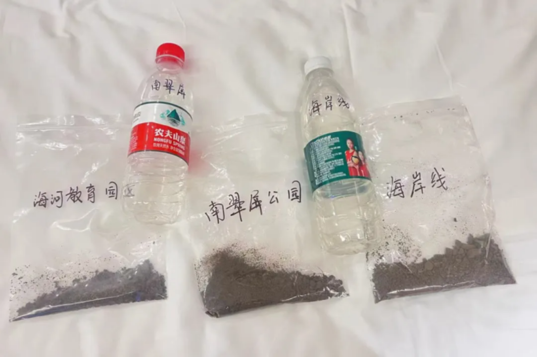 历时四天,科考团先后前往海河教育园区公园(海河)、南翠屏公园(湖水)、东疆亲海公园(海岸线)、观澜角公园(海岸线)进行水体及土壤采样,开展针对当地生态环境的学习研究。