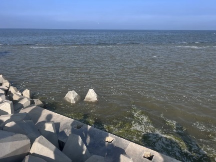 眺望着画面,我们可以清晰的近海与远海的分界线,海面上无明显的漂浮物垃圾,可见天津对海岸线的治理也做出了很大的努力,海岸线的治理靠的不仅仅是政府的努力,也依靠着人们的自觉。我们发现来海岸线赶海的人们都会自觉带走产生的垃圾,保障了对海洋生态环境的最小破坏。