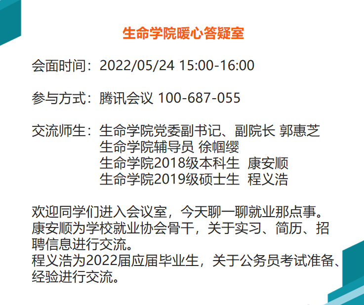 2、2022年5月24日15:00-16:00,会议码100 687 055。后续时间安排将陆续发布。