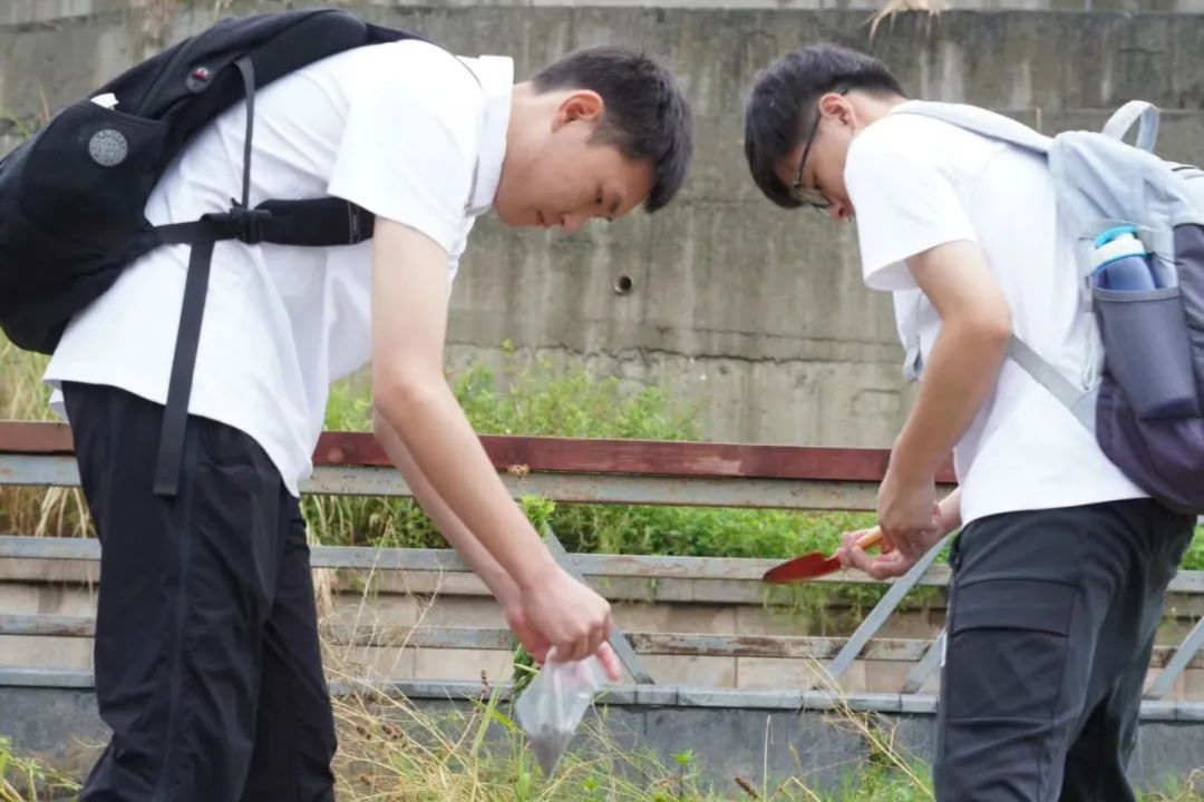 本科考团前往三江口下游,对附近水域水质以及土壤展开检测及调研,通过线上研究、实地采样、检测分析,对城市污水处理系统以及三江口周围水质展开实地实践。