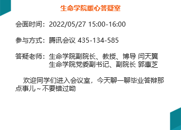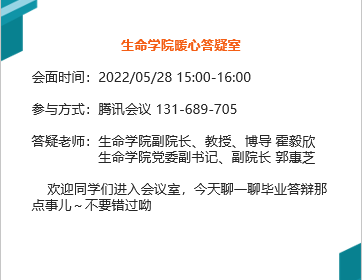 2、本科生:2022年5月27日15:00-16:00,会议码435 134 585。研究生:2022年5月28日15:00-16:00,会议码131 689 705。