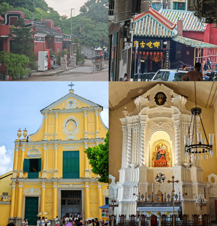 在澳门参观途中,团员注意到澳门中西方文化交融的一大体现在其民间信仰。沿途神龛,祠堂,妈祖、哪吒等庙宇,教堂星罗棋布、交错出现,共同构成了澳门丰富的民间信仰,催生出了多彩的艺术。