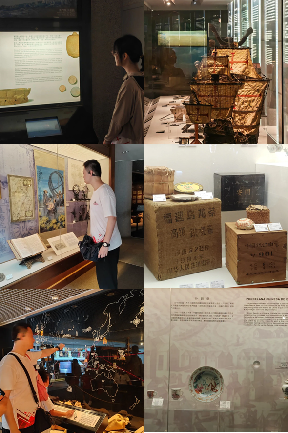2024年8月8日,澳门分团登上澳门半岛的大炮台,来到其中的澳门博物馆参观学习。博物馆首先介绍了中华传统文化与葡萄牙的历史,而后介绍了十五世纪葡萄牙的海上扩张。从达伽马到欧维士,从好望角到马六甲,葡萄牙作为大航海时代最早进行全球远洋航行的欧洲国家,于1513年首先到达澳门;之后葡萄牙商人不顾明朝皇帝禁令,在澳门地区进行殖民。在博物馆,澳门团成员细致了解了澳门的殖民史与其和外界的商贸往来,深刻体会了澳门百年变迁的得——经济发展和文化交融与失——主权丧失近五个世纪之久。