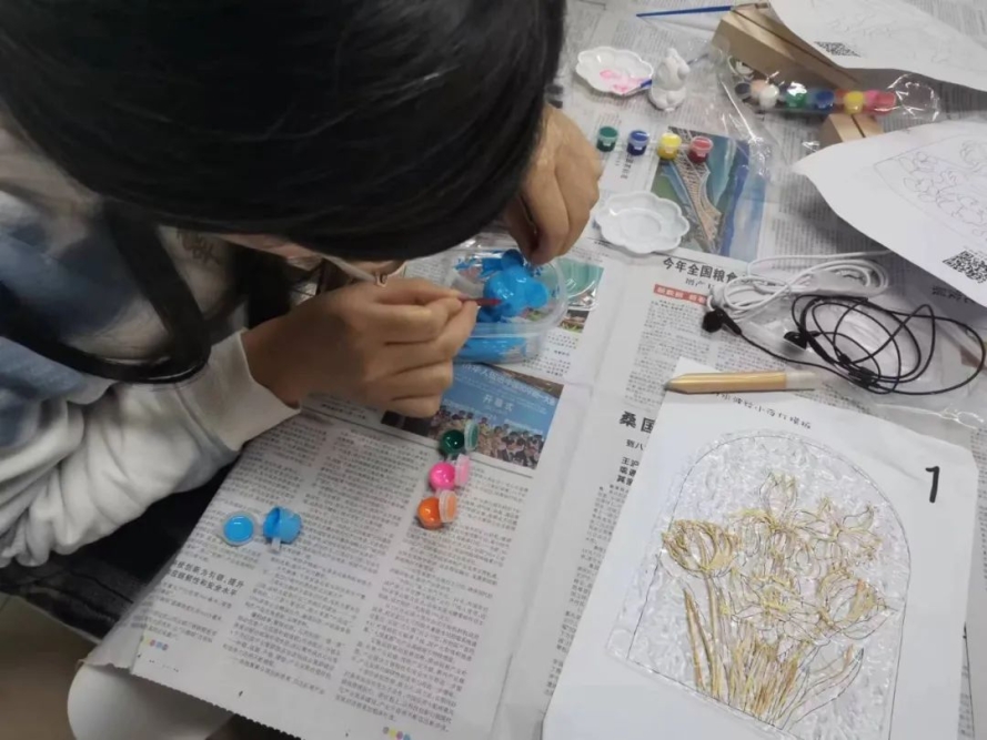 大家在观看完教学视频后,选取自己想DIY的物品,根据教学视频中的步骤,开始制作DIY作品。按照视频中的指示,一步一步地完成每个工序,大家伙们都好认真啊!