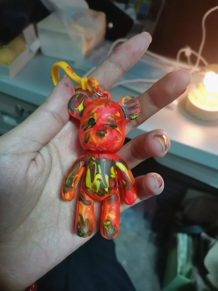 这位同学在认真的给他的暴力熊钥匙扣上色。