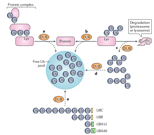 泛素化是指泛素(一类低分子量的蛋白质)分子在一系列特殊的酶作用下,将细胞内的蛋白质分类,从中选出靶蛋白分子,并对靶蛋白进行特异性修饰的过程。这些特殊的酶包括泛素激活酶、结合酶、连结酶和降解酶等。泛素化在蛋白质的定位、代谢、功能、调节和降解中都起着十分重要的作用。同时,它也参与了细胞周期、增殖、凋亡、分化、转移、基因表达、转录调节、信号传递、损伤修复、炎症免疫等几乎一切生命活动的调控。泛素化与肿瘤、心血管等疾病的发病密切相关。因此,作为近年来生物化学研究的一个重大成果,它已然成为研究、开发新药物的新靶点。