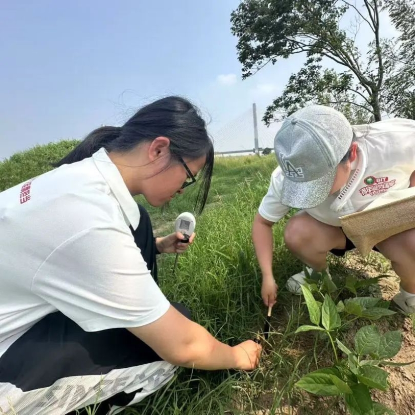 团队成员在进行水样和土壤的采样和实时检测