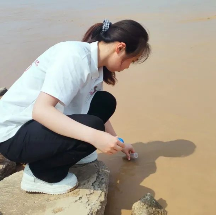 来到黄河附近,映入眼中的是一片泥黄色的宽广河域,无论是黄河本身还是取的水样,都浑浊得不可透光,反映出水中携带的巨量泥沙。岸边堆着一些被黄河冲上的杂物,无声地向我们诉说黄河的伟力。我们采集了河水与土壤样本,使用仪器进行实时检测,以期这些数据能够为评估黄河下游的水质与生态环境提供参考。