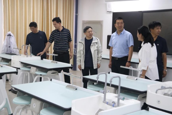 座谈会结束后,大家共同参观了解了生物实验室的建设情况。周连景与方山县高级中学校领导、欧阳哲、刘亮勤一起见证北京理工大学与方山县高级中学共建“创新实验室”。