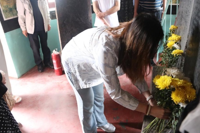 在烈士塔前,大家向长眠于此的烈士敬献菊花,表达对烈士的无限哀思与崇敬,并瞻仰纪念碑。