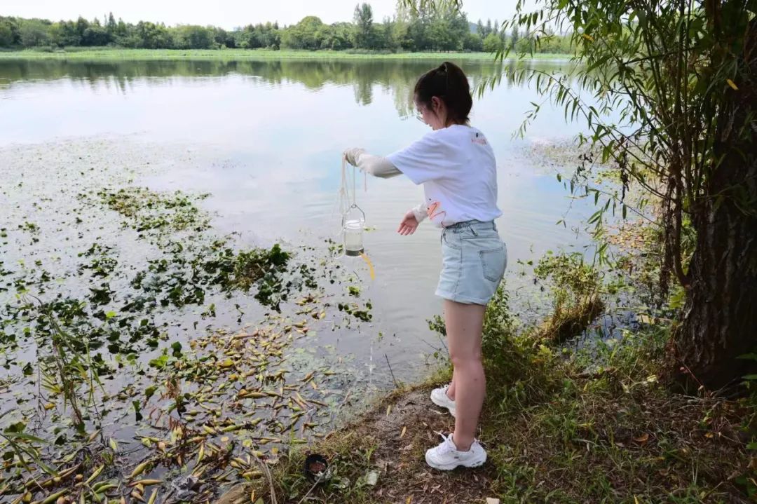 到了下午,科考团来到了碧波浩淼的后官湖,没有惊涛拍岸,亦没有潺潺流水,但是美如水墨画的后官湖还是在乍见之初便洗净了科考团成员午后的疲惫,远离城市的吵闹和喧嚣,科考团在这里似乎将自己对于“生态”的领悟又添了几分。一番休整过后,科考团成员再次进入了认真细致的工作状态。