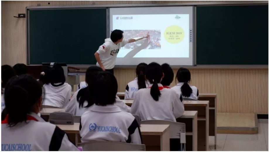 不仅是在队伍队员培养方面他尽心尽责,他也努力推进为校园内的同学们服务。他带领着BIT队举办了一系列讲座、外场活动以及B站课程,帮助喜欢合成生物学的同学更多的了解相关知识。不仅是对于本科生,他与队伍一起也经常为首师大附中等初高中的同学们举行科普宣传活动。