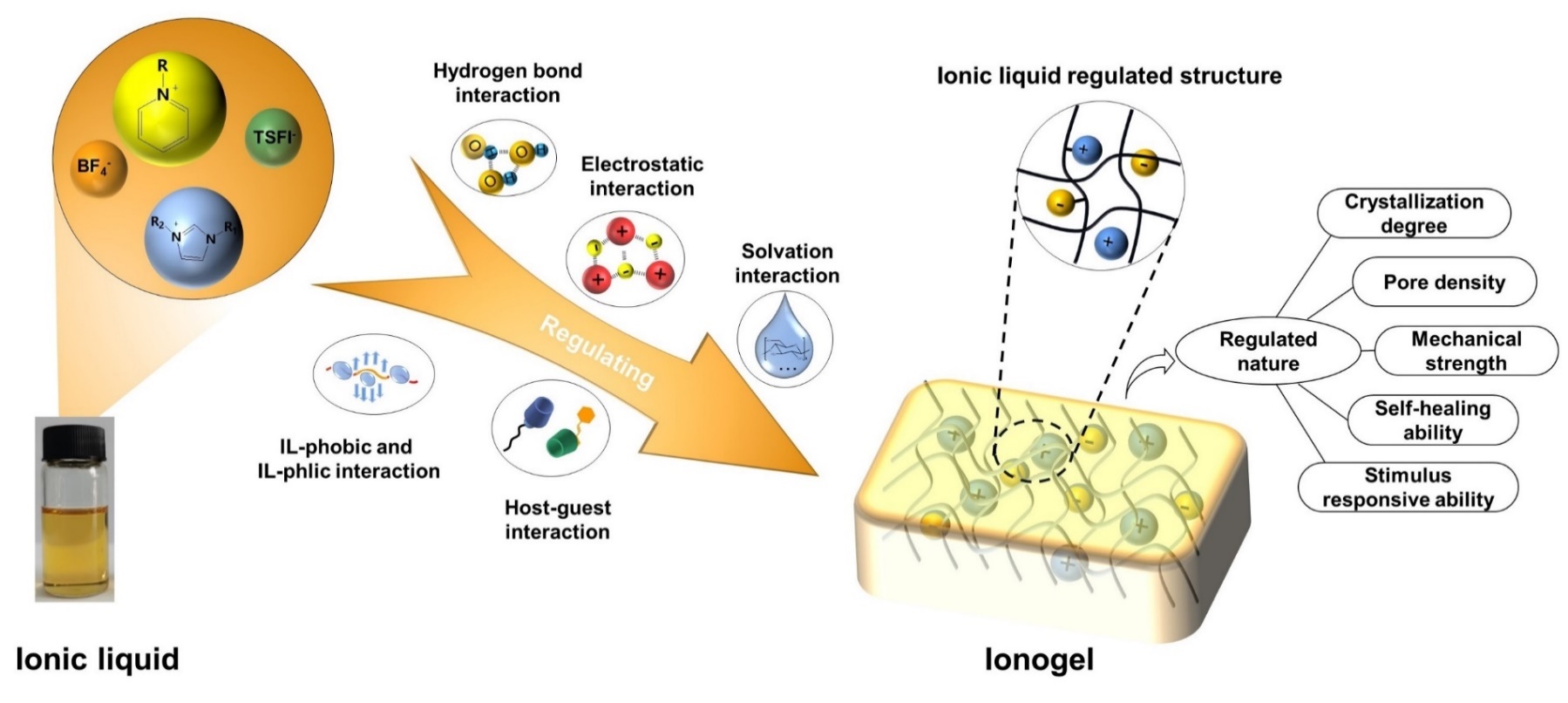 Zhihong Luo, Wenjin Li, Jipeng Yan,* and Jian Sun*, Roles of Ionic Liquids in Adjusting Nature of Ionogels: A Mini Review, Advanced Functional Materials, 2022, 2203988. https://onlinelibrary.wiley.com/doi/10.1002/adfm.202203988