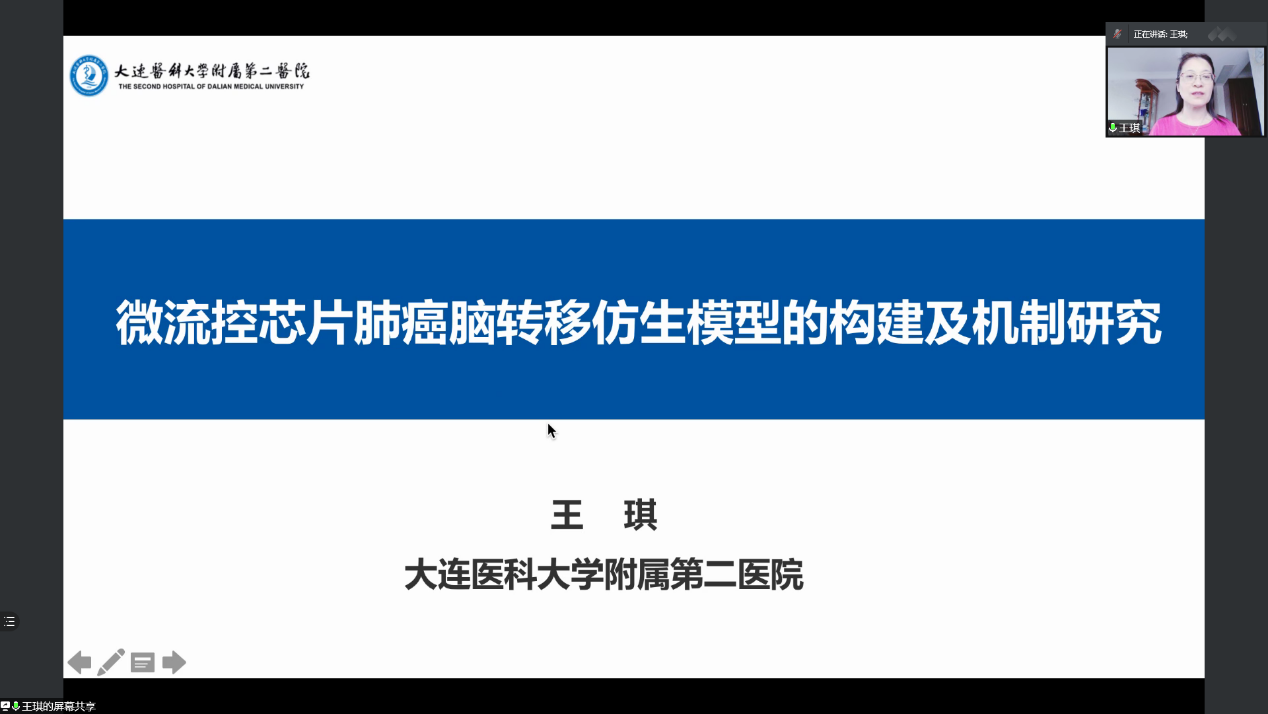 大连医科大学附属第二医院王琪教授作题为“微流控芯片肺癌脑转移仿生模型的构建及机制研究”的专题讲座