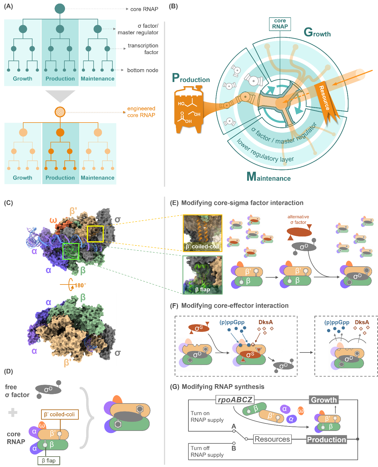 图1 通过工程式改造RNAP核心酶实现全局转录调控网络的重编程