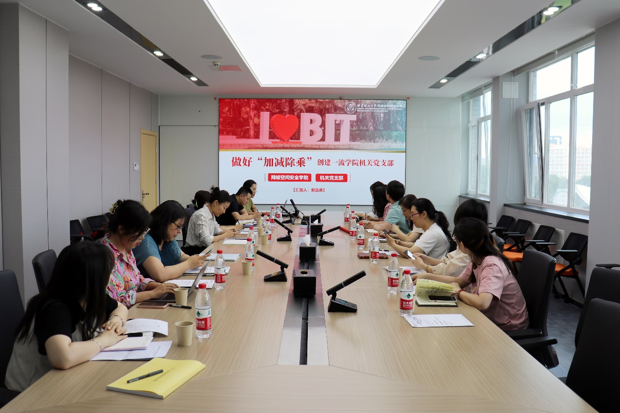会上,吕雪飞和郝浩倩首先分别介绍了此次参会人员。而后,郝浩倩做了支部 “加减除乘”工作法的分享,她提出在宣传执行党的路线方针政策上做“加”法赋能给支部,在密切联系群众听取群众意见上做“减”法肩负给师生,在做好教师思想政治工作上做“除”法除障给师生,在团结师生员工上做“乘”法聚力给学院。