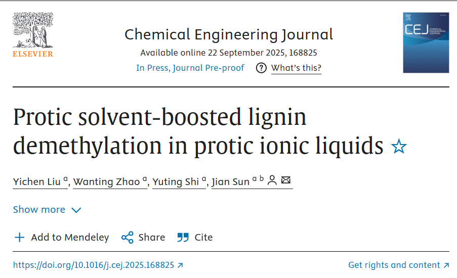 近日,北京理工大学betway西汉姆联绿色生物制造团队通过质子溶剂与质子型离子液体(PILs)的协同作用策略(图1),实现了在无卤条件下木质素绿色高效脱甲基化制备多酚的研究新进展。相关成果以“Protic solvent-boosted lignin demethylation in protic ionic liquids”为题发表于国际顶级期刊《Chemical Engineering Journal》(IF = 13.2),论文第一作者为博士后刘逸尘,孙剑教授为通讯作者,北京理工大学为第一作者通讯单位。