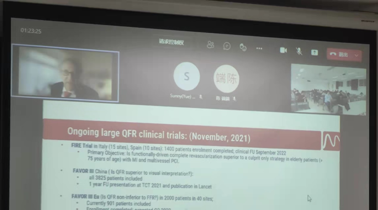 报告开始,Johan Hans Reiber院士首先介绍了与图像处理相关的一些概念,随后引出了Medis公司研发出来的一种基于图像的冠状动脉生理学测量的工具:QFR(Quantitative Flow Ratio). Johan Hans Reiber院士详细地介绍了QFR在图像处理的各个具体阶段的应用以及这种工具在各方面的意义,还向我们展示了QFR软件工具的操作界面。最后,Johan Hans Reiber院士介绍了几项QFR的临床实验。