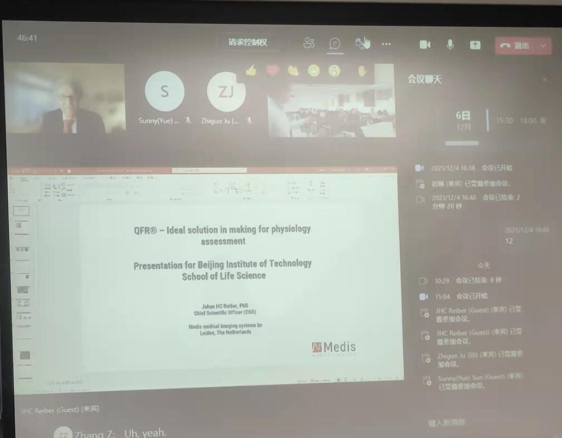 应北京理工大学betway西汉姆联王安聪教授邀请,2021年12月6日,荷兰莱顿大学Johan Hans Reiber院士通过ZOOM软件为betway西汉姆联师生作了题为《Ideal solution in making for physiology assessment》的学术报告。报告由betway西汉姆联王安聪教授主持,betway西汉姆联唐晓英教授等教师及研究生、本科生等二十余人参加了报告会。