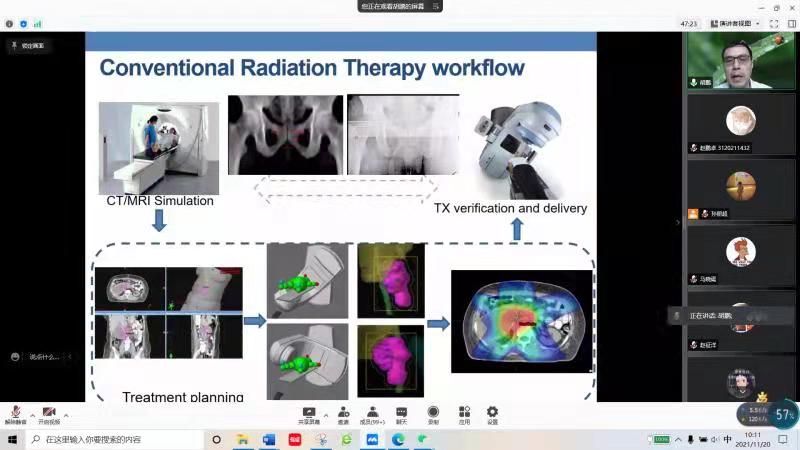 为加强学术交流,上海科技大学胡鹏教授应我院闫天翼教授邀请,于11月20日上午为师生们带来了题为《磁共振引导的放射治疗最新进展》的线上报告。报告由闫天翼副授主持,我院一百五十余名师生参与了本次报告。