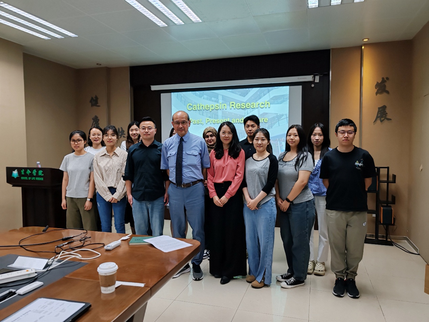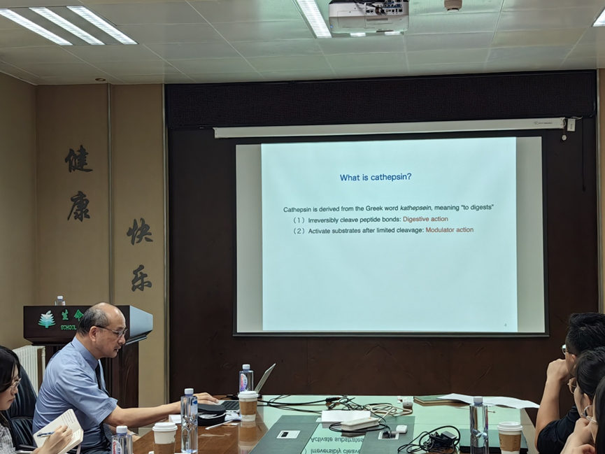 中西教授的报告内容涵盖了其进入学术生涯后25年来的研究,内容丰富、结构严谨,既展现了深厚的学术积淀,又拓宽了听众的研究视野。报告现场气氛热烈,师生们踊跃提问,与中西教授展开了深入的学术交流。此次学术报告不仅使大家对组织蛋白酶研究的发展脉络有了更全面的认识,也为相关领域的研究提供了新的思路与启发。此次学术交流为学院师生搭建了与国际知名学者面对面交流的平台,进一步活跃了学院的学术氛围,拓展了科研视野。