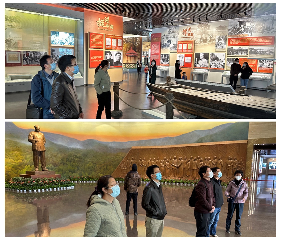参观结束后,同志们在纪念馆前进行了合影,并纷纷表示对新中国成立前期的历史有了更深入的了解,接受了一场深刻的党史教育和精神洗礼,深切领悟了共产党人为中国人民谋幸福、为中华民族谋复兴的初心和使命,切实体会到了以毛泽东同志为核心的第一代中央领导集体领导人民实现中华民族独立、人民解放和建设新中国的坚定信念和伟大力量。在今后的工作中,要继承弘扬中国共产党人的革命精神和“赶考”精神,赓续红色血脉,把共产党人的优良传统代代相传下去,要牢固树立“四个意识”,坚定“四个自信”,做到“两个维护”,不忘初心、牢记使命,以昂首拼搏的姿态和奋斗不息的精神出色完成自己的本职工作,走好红色育人路,为学校各项事业高质量发展贡献自己的一份力量!