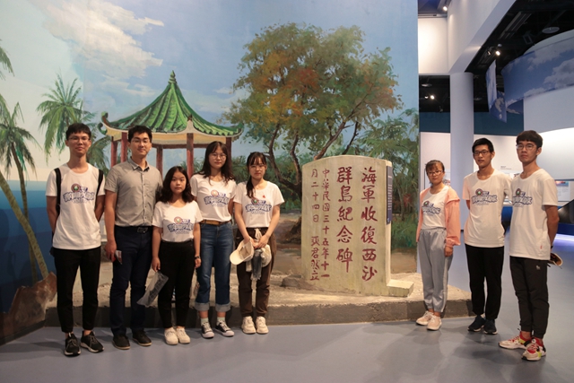 队员们在南海博物馆收复西沙群岛纪念碑前