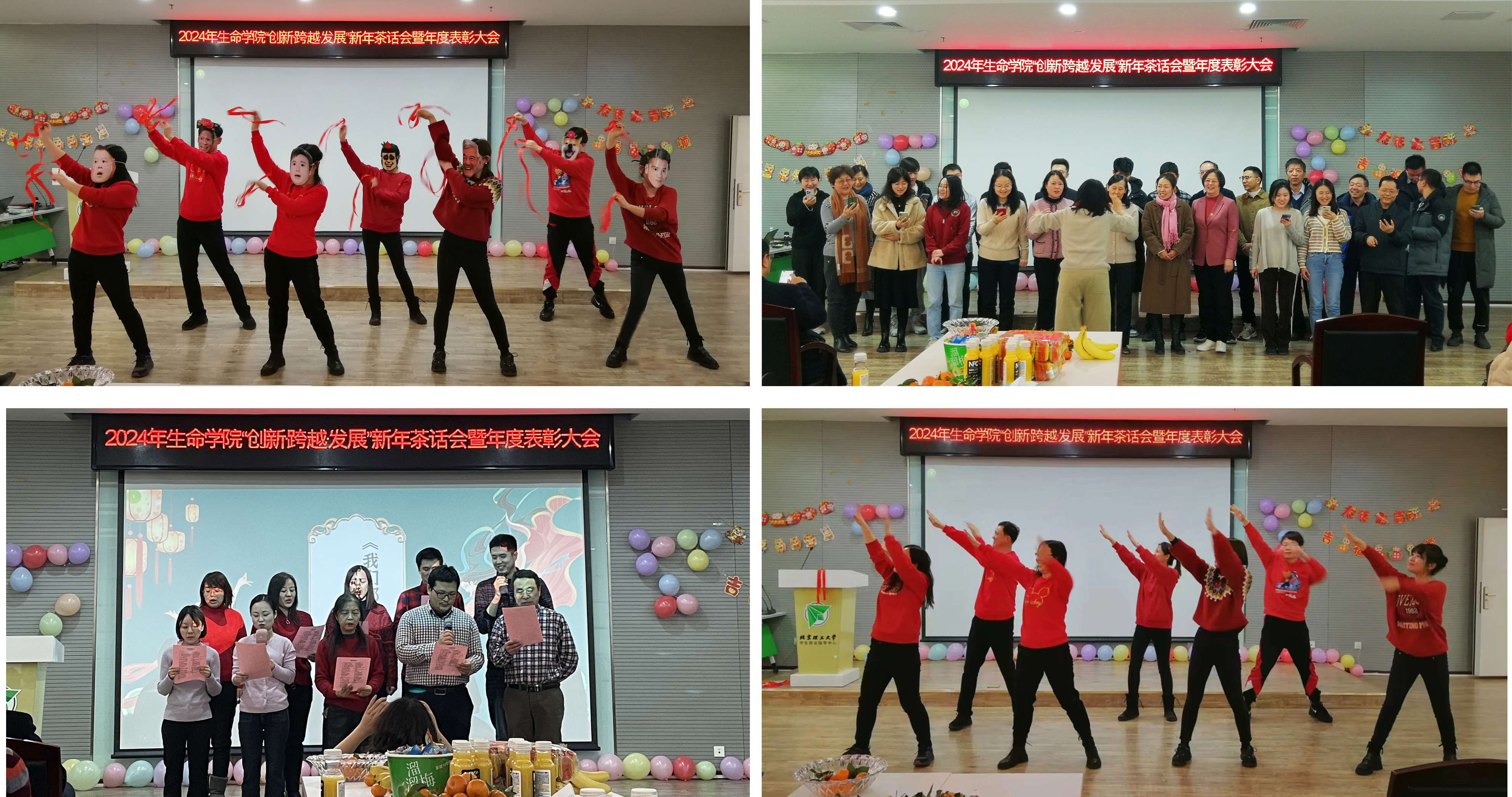 大会分为“学院领导致新年贺词”、“退休教师荣休仪式”、“新入职教师欢迎仪式”、“年度贡献表彰仪式”和“新年茶话会”五个篇章。