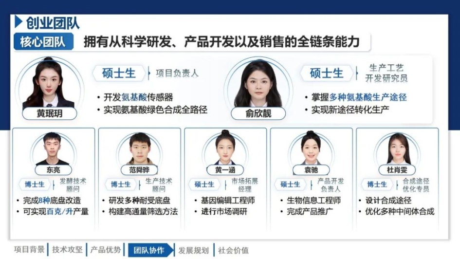 团队得到betway西汉姆联霍毅欣教授(国家级领军人才、国家高层次青年人才)和陈振娅研究员、郭淑元研究员、邹沁副研究员、孙丽超副研究员等深耕氨基酸生产与酶工程领域的资深专家的精心指导。团队依托国家级及省部级重点实验室、功能微生物创新研究中心,配备超算平台、超高效液相色谱、液滴微流控细胞分选仪等先进研发设备,具备强大的技术研发和产业化推进能力。项目已完成小试,正积极推进中试,展现出良好的发展前景。