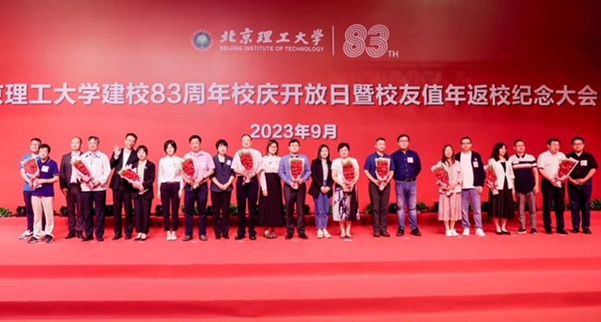 上午,校友参加了北京理工大学建校83周年校庆开放日暨校友值年返校纪念大会。优秀校友代表2004级本科生赵东为教师代表邓玉林教授献花。