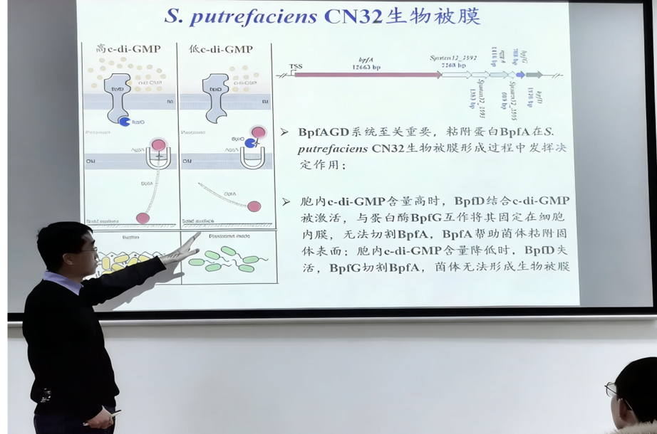 为促进学术交流与科研创新,江苏师范大学刘伟杰教授于10月24日到访并作题为《第二信使cAMP与c-di-GMP交叉调控腐败希瓦氏菌形成生物被膜的分子机制》的学术报告,近20名师生参与。